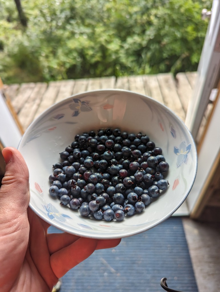 Comble du bonheur : la veille, nous avons trouvé sur notre chemin une bonne quantité de bleuets sauvages, qui rendent notre gruau un peu plus festif!