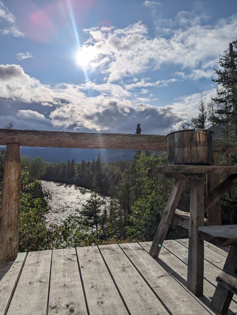 Plusieurs mètres en contrebas, la rivière se mérite : il faut avoir le coeur et les articulations bien accrochés pour y arriver, et surtout pour en remonter un chaudron plein d’eau à filtrer ! Mais la force assurée de son eau claire vaut chaque pensée de mort imminente.